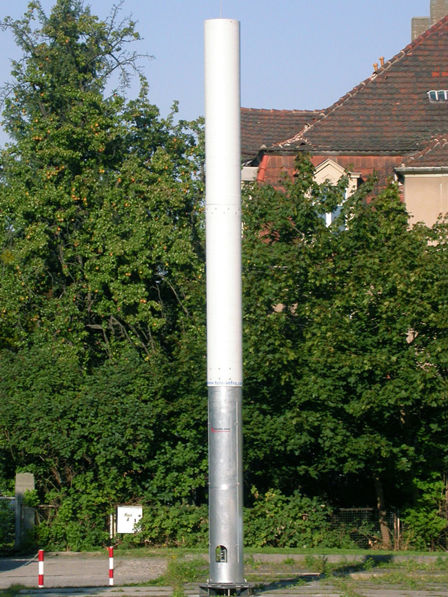 Die Antennen werden in einer Röhre „versteckt“. Das sieht nicht nur unauffälliger aus, sondern schützt die Bauteile auch vor Umwelteinflüssen. Die äußere, sichtbare Hülle kann variabel gestaltet und somit Kundenwünschen oder Vorgaben des Denkmalschutzes angepasst werden.
